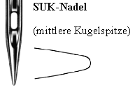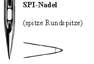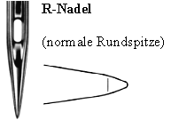 meisten Textilien vorteilhaft. Daher weist die normale Rundspitz-Nadel (R) eine